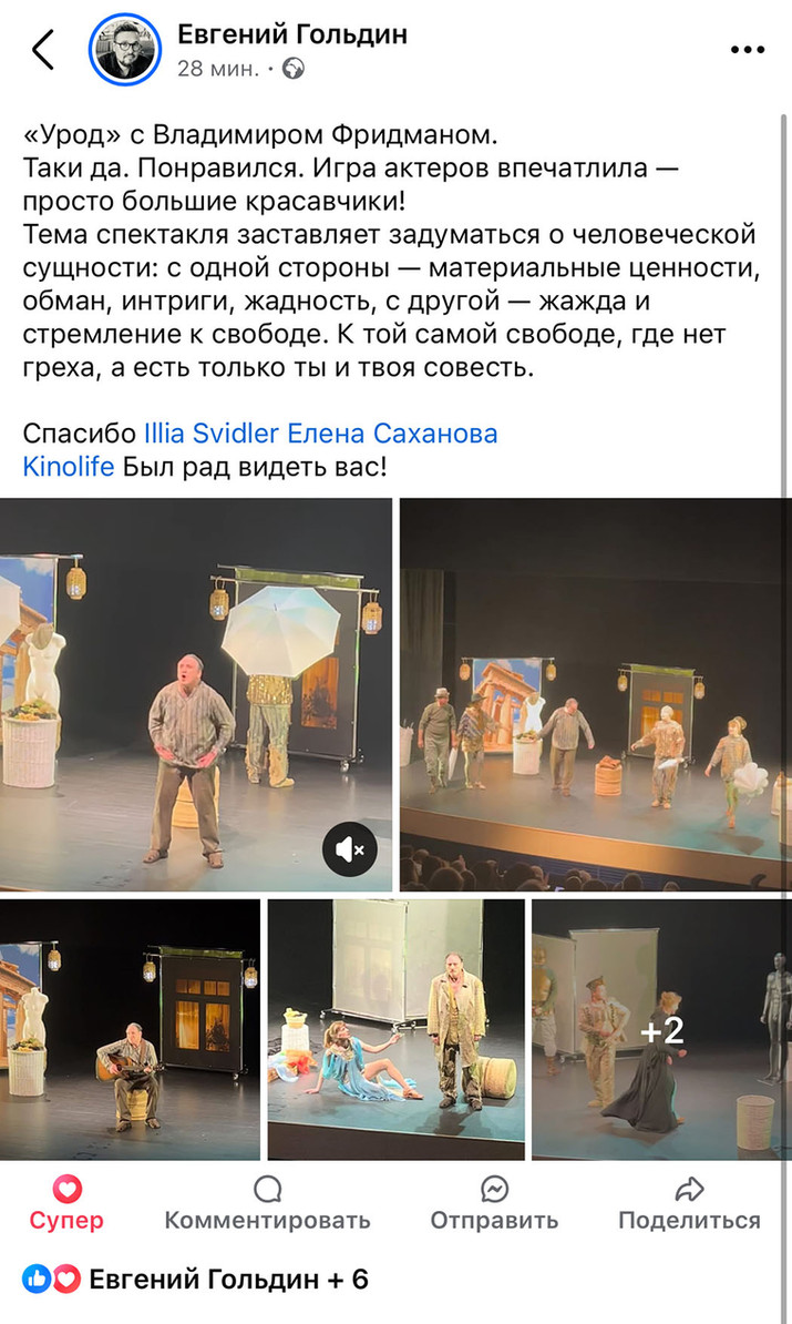 Актеры играли так, что у меня шерсть встала дыбом! Владимир Фридман в роли Эзопа был похож на кошку, которая гуляет сама по себе: сгорбленный, но непокоренный, раб против своей воли, но с ярким внутренним светом. Он ловко бросал реплики, подобно тому, как я бросаюсь за пролетающей тенью.